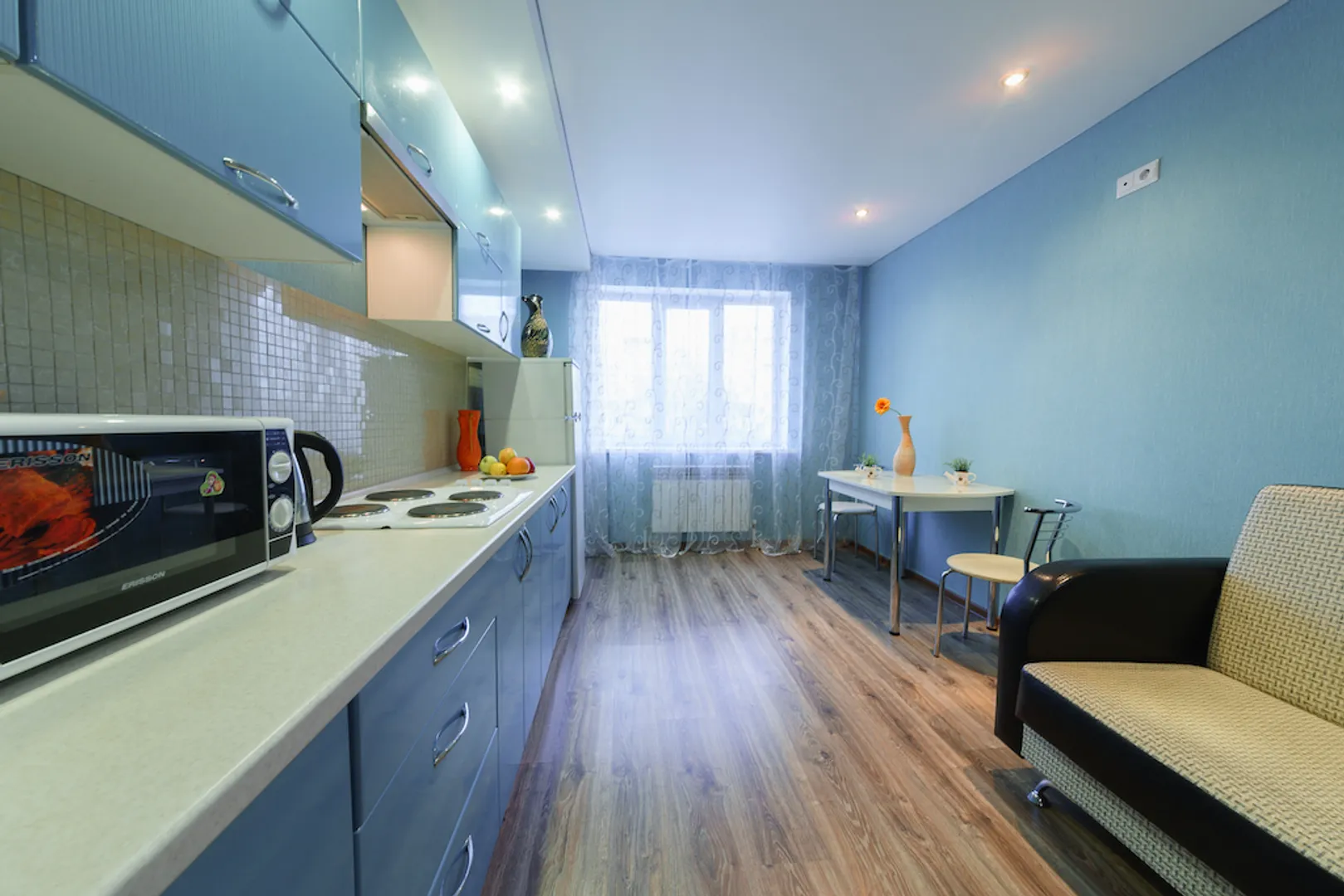 Элитный дом. В квартире новый ремонт (апрель 2017 года) В комнате кровать, на кухне студии диван, поэтому квартира может считаться двухкомнатной.