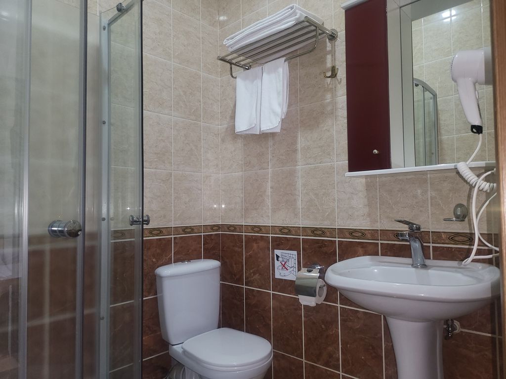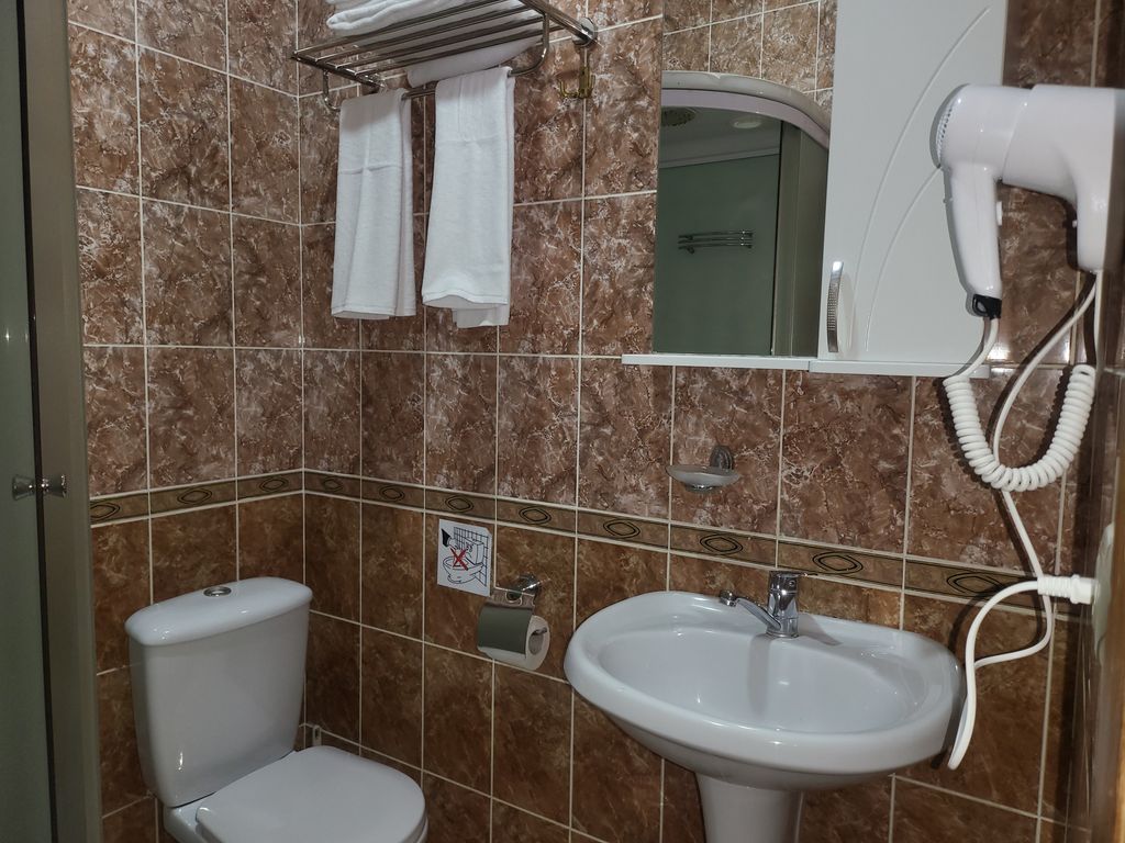 Номер соответствует заявленному. Душ общий, но это кому как. Номеров не много так что сильной проблемы с этим нет. Кафе там просто великолепно.