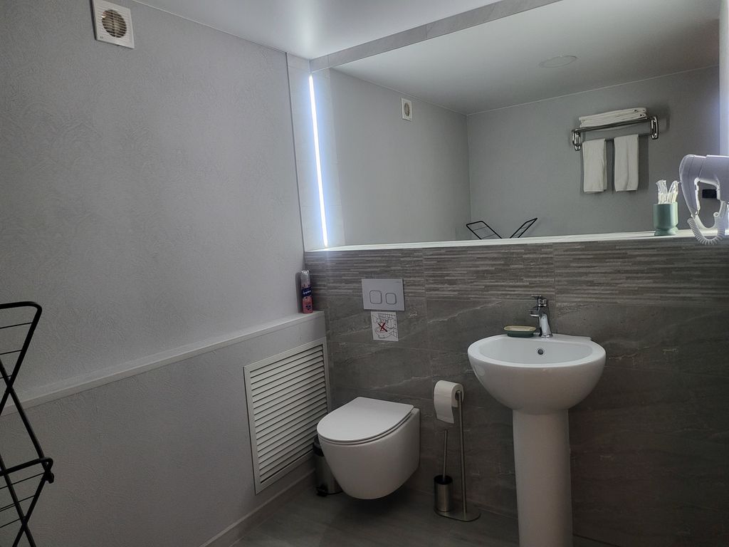 Очень удобное расположение,внизу кафе с очень вкусной едой.Рядом с гостиницей находится набережная,где можно погулять с детьми.Все отлично.