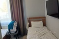 Номер с двумя кроватями был маленький, метров 12 (включая санузел), кровати стоят под 90 градусов, одна из них под ТВ ногами к двери. Слышно как храпит сосед и сильно гудят трубы, когда кто-то из соседей пользуется водой.